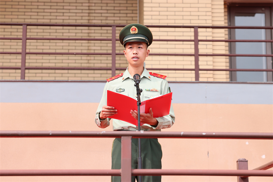 承训教官代表随后发言,他表示,武警晋中支队全体承训官兵将秉持 “文明之师、威武之师” 的优良作风,严格按照军训大纲要求,科学施训、精准施教,既传军事技能,更育爱国情怀,助力新生在军训中练就过硬本领、塑造坚毅品格,与学校共同完成好此次军训任务。