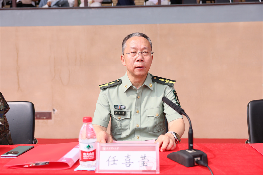 “80 年前,无数先烈用鲜血铸就民族解放丰碑;今天,青年一代当以军训为起点,接过国防重任的接力棒!” 军训团政委、校党委常委、副校长任喜莹发表动员讲话。他首先代表学校向全体 2025 级本科新生致以热烈欢迎,向承担本次军训任务的武警晋中支队官兵表示诚挚感谢,并结合中国人民抗日战争暨世界反法西斯战争胜利 80 周年的特殊历史节点,深刻阐释了军训的时代意义与育人价值。